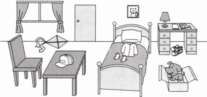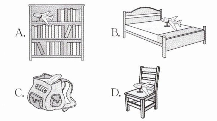 ①The radio. ②The schoolbag. ③The cap. ④The model plane.