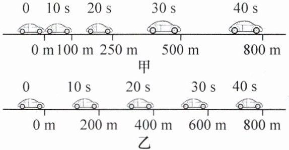 6. 如图记录了两辆汽车在平直公路上的运动情况,在这 800 m 的运动过程中,甲、乙两车的平均速度$v_{甲}$