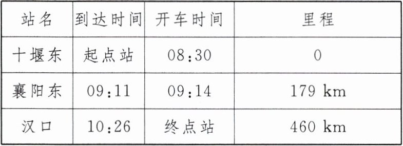 3.(2024·十堰期末)十堰到汉口的某次列车运行时刻表如表所示(部分),某天此次列车从十堰东准时发车,但由于天气原因实际10:30才到达汉口站,请根据列车运行时刻表和实际情况回答下列问题。