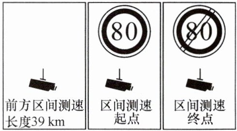1. 如图所示是某高速路段路上的一个区间测速的相关标识,某汽车以70 km/h的速度进入该区间测速路段(全长为39 km)匀速行驶了一段距离后又以100 km/h的速度匀速行驶了15 min,然后再以70 km/h的速度继续匀速行驶直至离开该区间测速路段。
