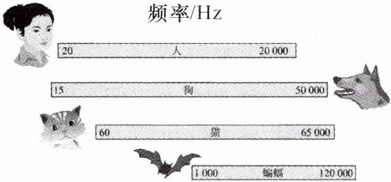 6. A 人大附中校本经典题 如图是人和狗等动物的听觉频率范围。某种飞蛾飞行时在1 min内翅膀振动1080次,不考虑距离因素,则这种飞蛾飞行时发出的声音(