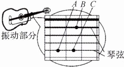 (5)如图所示,请你判断在琴弦松紧程度相同的情况下,分别按住A点、B点、C点后拨动琴弦,发出的声音音调最高时按住的是