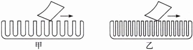 7. 如图甲、乙所示,用薄塑料片在两把塑料梳子的齿上用同样的速度分别划一次,则(
