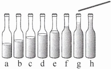 8. 如图是八个相同的玻璃瓶,分别装有高度不同的水。用筷子分别敲击瓶子,下列说法正确的是(