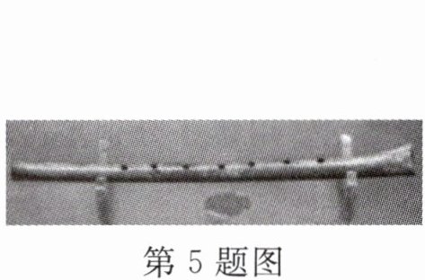 5. (2023·菏泽)1987 年我国发现了公元前 6000年以前的一支完整骨笛——贾湖骨笛(如图所示),它是由丹顶鹤尺骨制成的,上有七个音孔。演奏时用手指控制不同音孔的开闭,使它发出声音的