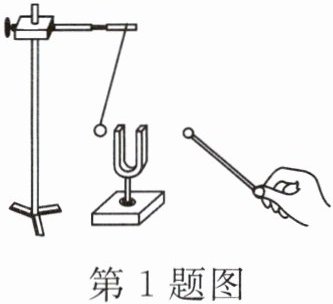 1. A 北京四中校本经典题 如图所示,用细线拴着硬泡沫塑料小球,悬挂在铁架台上,用橡皮槌轻轻敲击音叉,音叉