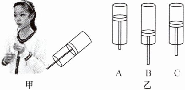 。如图乙所示,活塞在管中不同位置时,用嘴吹管的上端能分别吹出“do(1)”“re(2)”“mi(3)”三个音阶,则“do(1)”这个音阶与B
