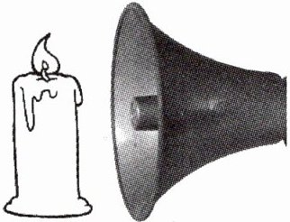 3. 如图所示,将一支点燃的蜡烛放在扬声器的前方,当扬声器发出较强的声音时,可以看到烛焰随着音乐的节奏晃动。扬声器的纸盆由于