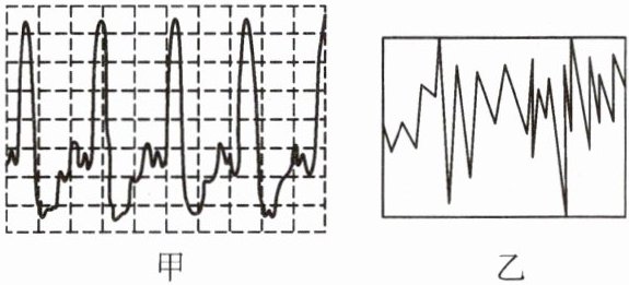 2. 如图甲、乙所示的两幅声音波形,可能是钢琴声音波形或泡沫塑料块刮玻璃时产生的噪声波形。下列判断正确的是(