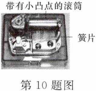 10.(2024·武汉洪山区期末)“八音盒”是一种机械音乐盒,如图所示。上紧发条后圆筒转动,圆筒上按一定规律分布着一些凸起高度相同的点,它们拨动簧片就会奏出乐曲。下列说法正确的是(