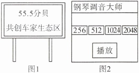 6.(2023·随州)如图是生活中的两个情境,图1是居民小区噪声监测器,显示环境噪声为55.5分贝。图2是钢琴调音师正在用手机上的一个调音软件播放音叉256、512、1024、2048(Hz)的标准音来校准琴音。下列说法正确的是(