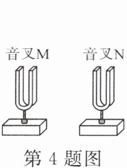 4.(2023·广州)如图,音叉M、N完全相同,M发出440Hz的声音,原来静止的N随之振动,N也发出440Hz的声音,则(