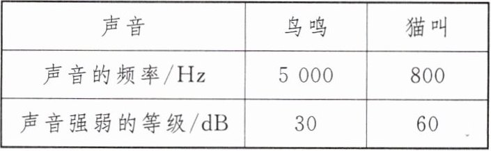 3.(2024·广州)监测器测得某次鸟鸣和猫叫的声音信息如下表,则(