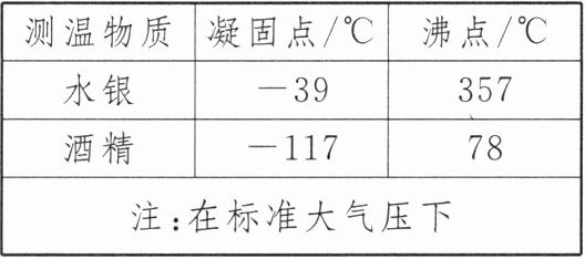(2)水银和酒精是液体温度计常用的测温物质。由表格中的数据可知,本实验应选用
