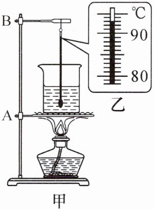(填“A”或“B”)的位置。(2)水银和酒精是液体温度计常用的测温物质。由表格中的数据可知,本实验应选用