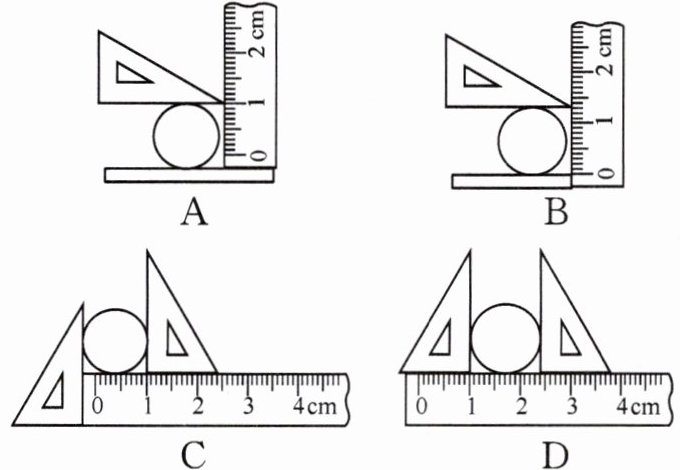 1. 如图所示为测量硬币直径的几种方法,其中正确的是 (