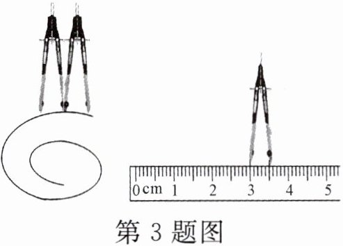 3. 如图是用圆规测曲线长度的一种方法,先将圆规两脚分开,记下圆规分割曲线的总段数n,然后测出圆规两脚间的距离l,那么曲线的长度L=