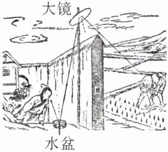 5. 汉代的《淮南万毕术》中记载:“取大镜高悬,置水盆于下,则见四邻矣。”如图装置是世界上有记载的最早的潜望镜,其中高悬的大镜是