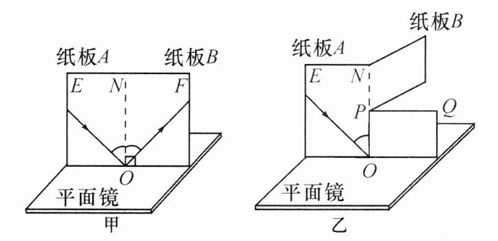 (4)实验小组的小明同学把纸板B沿PQ剪开,将纸板的上半部分向后折转一定的角度,如图乙所示,发现在纸板的