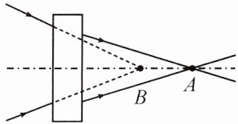 3. 如图所示,一束光经过一个透镜后会聚于主光轴上的点A,取掉透镜后,光会聚于点B,则该透镜起到