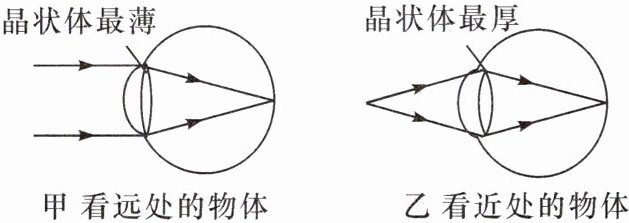 到凸透镜的距离不变,图中甲、乙分别是人眼观察远处和近处时晶状体的情况,分析可知,当人眼在观察物体时,物体由远处向人靠近时,晶状体厚度 变厚