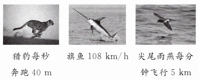 9. 现在陆地上跑得最快的动物是猎豹,在水中游得最快的动物是旗鱼,在空中飞得最快的动物是尖尾雨燕,如图所示是这三种动物及它们运动的有关数据,如果让这三种动物在一起比赛,冠军是 (