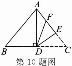 10. 如图,在 $\triangle ABC$ 中,$AD$ 是 $BC$ 边上的高,$E$ 是 $AC$ 上一点,连接 $DE$,将 $\triangle CDE$ 沿 $DE$ 折叠,使点 $C$ 落在 $AC$ 边上的点 $F$ 处,若 $\angle ADF = 20^{\circ}$,$\angle BAC = 75^{\circ}$,则 $\angle B$ 的度数为(