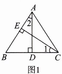 12. 如图1,在 $\triangle ABC$ 中,$AD\perp BC$ 于点 $D$,$CE\perp AB$ 于点 $E$。