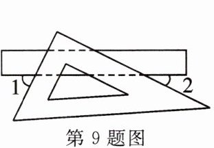 9. 如图,某同学在课桌上无意中将一块三角板叠放在直尺上,则 $\angle 1+\angle 2= $(
