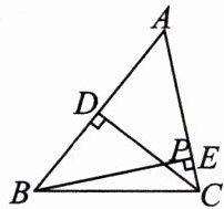 7. 如图,在锐角三角形 ABC 中,CD,BE 分别是 AB,AC 边上的高,且 CD,BE 交于一点 P.若∠A = 50°,求∠BPC 的度数.