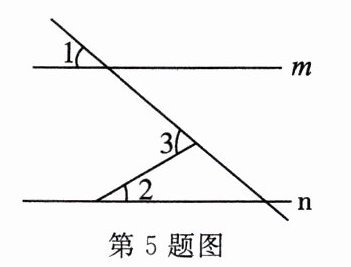 5. 如图,已知直线 m//n,∠1= 40°,∠2= 30°,则∠3 的度数为