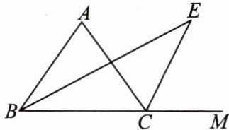 2. (一题多设问)如图,在$\triangle ABC$中,$BE是\angle ABC$的平分线,$CE是外角\angle ACM$的平分线,$BE与CE相交于点E$.