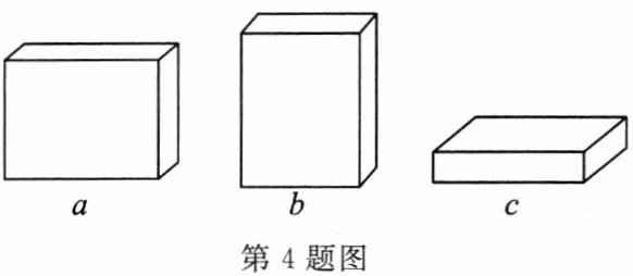 4. 一块质地均匀的砖,以图所示 $ a $、$ b $、$ c $ 三种方式放置在同一水平面上,其重心位置(