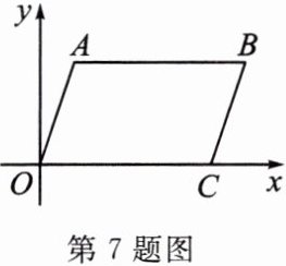 7.(原创题)我们知道,平行四边形的对边平行且相等,如图,平行四边形 $ ABCO $ 中,边 $ OC = 5 $,点 $ A $ 的坐标为 $ (1,3) $,则平行四边形 $ ABCO $ 的重心坐标为______[提示:若点 $ M(x_1,y_1) $,点 $ N(x_2,y_2) $,则线段 $ MN $ 的中点坐标为 $ (\frac{x_1 + x_2}{2},\frac{y_1 + y_2}{2}) $。]