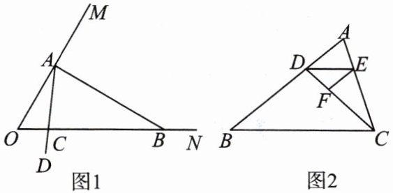 如图 1, $ \angle MON = 60^{\circ} $,点 $ A $ 在边 $ OM $ 上,过点 $ A $ 作 $ AB \perp OM $ 交 $ ON $ 于点 $ B $.以 $ A $ 为端点作射线 $ AD $,交线段 $ OB $ 于点 $ C $(点 $ C $ 不与 $ O $, $ B $ 重合)