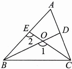 ;(3)$\angle 1,\angle 2,\angle A$共同的对边是