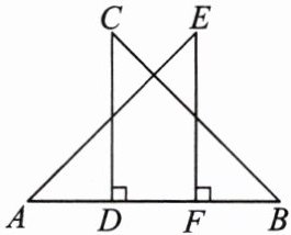 4. 如图,$CD⊥AB$,$EF⊥AB$,垂足分别为$D$,$F$,$CD= EF$,$AE= BC$. 求证:$AD= BF$.