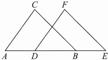 ∴AD+BD=BE+BD,即AB=DE,在△ABC和△DEF中,$\left\{\begin{array}{l} AB=DE,\\ AC=DF,\\ BC=EF,\end{array}\right. $