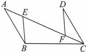 ∴AF-EF=CE-EF,即AE=CF.在△ABE和△CDF中,$\left\{\begin{array}{l} AB=CD,\\ ∠A=∠DCF,\\ AE=CF,\end{array}\right. $