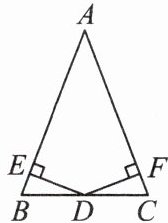 2. 如图,在$\triangle ABC$中,点D是BC的中点,$DE⊥AB$于点E,$DF⊥AC$于点F,且$DE= DF.$