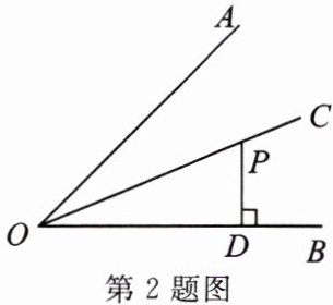2. (青海省中考)如图,$OC平分\angle AOB$,点$P在OC$上,$PD\perp OB$,$PD = 2$,则点$P到OA$的距离是(