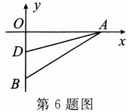 6. 如图,在平面直角坐标系中,$AD是Rt\triangle OAB$的角平分线,已知点$D的坐标是(0,-3)$,$AB的长是10$,则$\triangle ABD$的面积为