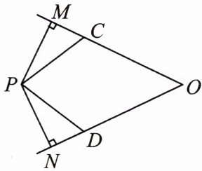 7. 如图,$OC = OD$,$PC = PD$,$PM\perp OC于点M$,$PN\perp OD于点N$。求证:$PM = PN$。