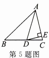5. (绵阳市中考)如图,在$\triangle ABC$中,$AB = 5$,$AD平分\angle BAC交BC于点D$,$DE\perp AC$,垂足为$E$,$\triangle ABD的面积为5$,则$DE$的长为(