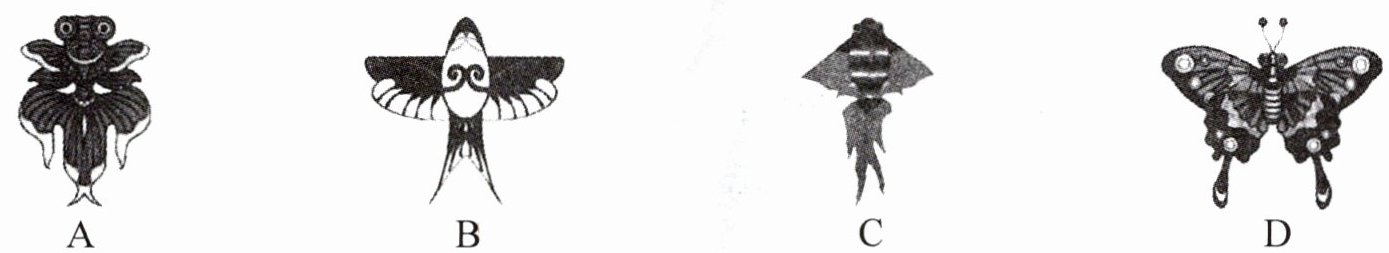任务一:了解风筝:同学们查询资料后了解到,风筝主要分为传统风筝、水平风筝和侧面风筝三类,下列是几种常见的风筝,其中不是轴对称图形的是(