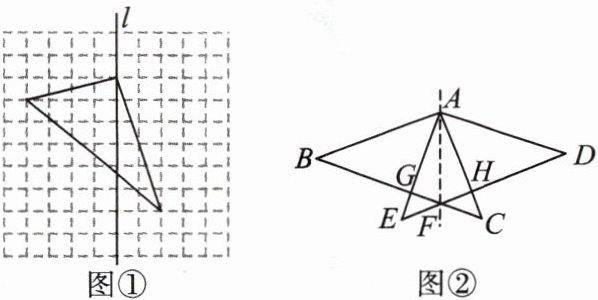 )任务二:设计风筝:风筝由骨架、风筝面、尾巴、提线、放飞线五部分构成,如图①是同学们设计的风筝骨架的一部分.请你在图①的网格中以直线$l$为对称轴,画出风筝骨架的另一半.