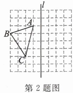 2. 如图,画出$\triangle ABC关于直线l对称的\triangle A'B'C'$.