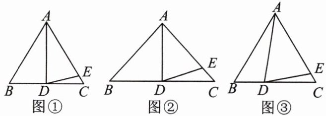 (1)如图①,若$\angle BAD = 30^{\circ}$,$AD是BC$边上的高,$AD = AE$,则$\angle EDC$的度数为