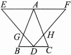 ∴90°-∠EDA=90°-∠FDA,即∠EDB=∠FDC,在△GDB和△HDC中,$\left\{\begin{array}{l} ∠GDB=∠HDC,\\ BD=CD,\\ ∠B=∠C,\end{array}\right.$