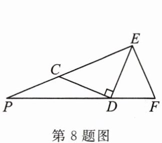 8. 将三等分角器改造成如图所示,点$C$为固定点,$CP = CD = DE = EF$,发现$CD \perp DE$时,$PD = 8$,则此时点$E到DF$的距离为